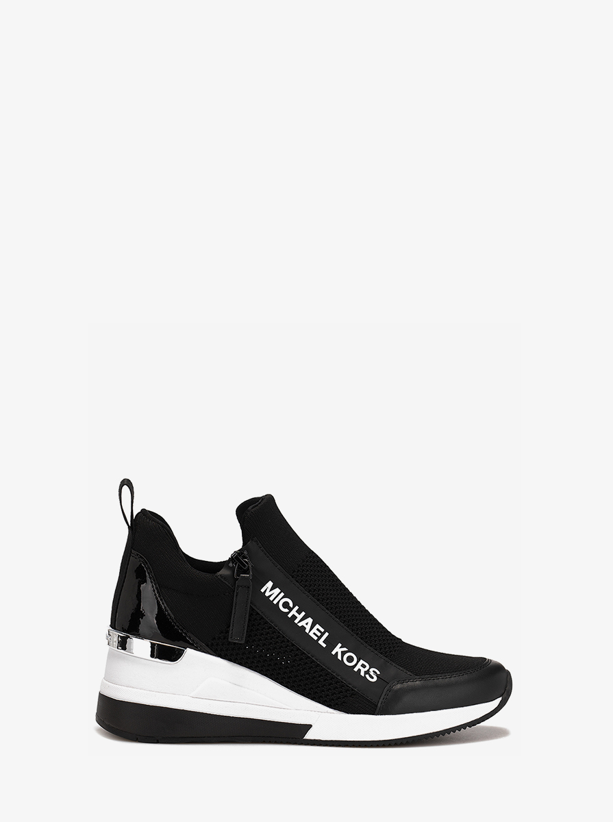 “Defined by the brandΓs coveted lettering, our Willis wedge trainer will kick any look up a notch. This pair is crafted from stretch knit for a breathable fit and feel, while a zip fastening makes them easy to slip on and off. Wear yours with coordinating athletic separates for a casual-cool look.”