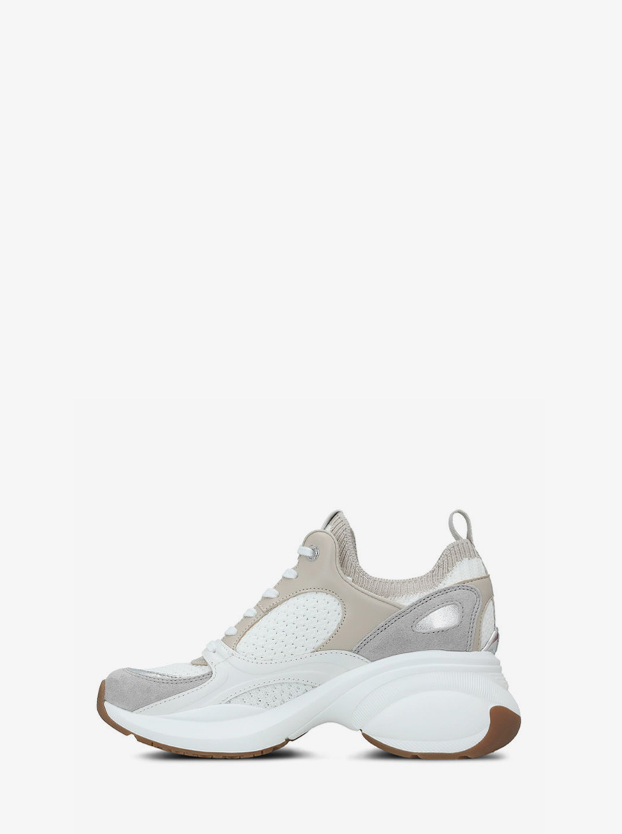 The Zuma trainer goes for the bold. Defined by exaggerated rubber soles and a sock-like cuff, they feature an eye-catching mix of color-blocked leather, suede and mesh panels. For an unexpected pairing, wear them with an oversized blazer-and-pant set.